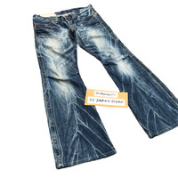 Flared Blue Way Japanese jean Nippon Kapital thunderstorm flash wash jean low rise cut *Good used condition *Made In Japan Actual measurement: Waist : 30 inch Inseam : 30 inch Outseam : 39 inch Front rise : 8.5 inch Hip : 20 inch Thigh : 11.5 inch Knee : 8 inch O.Leg : 9.5 inch *Make sure your size is Correct *No return and refund. SHIPPING : ✅The package will be ship via “DHL Express or Fedex express” *Please leave your phone number for shipping purpose/courier purpose Happy Shopping Your Support is much appreciated and thanks Thank For Visited. #Flared flare jean bootcut bottombell jean#Japanese brand kapital hysteric glamours#faded jean distressed jean trashed jean vintage jean#usa japan jean low rise jean rock jean Item ref : BJ-01 /BJ25A