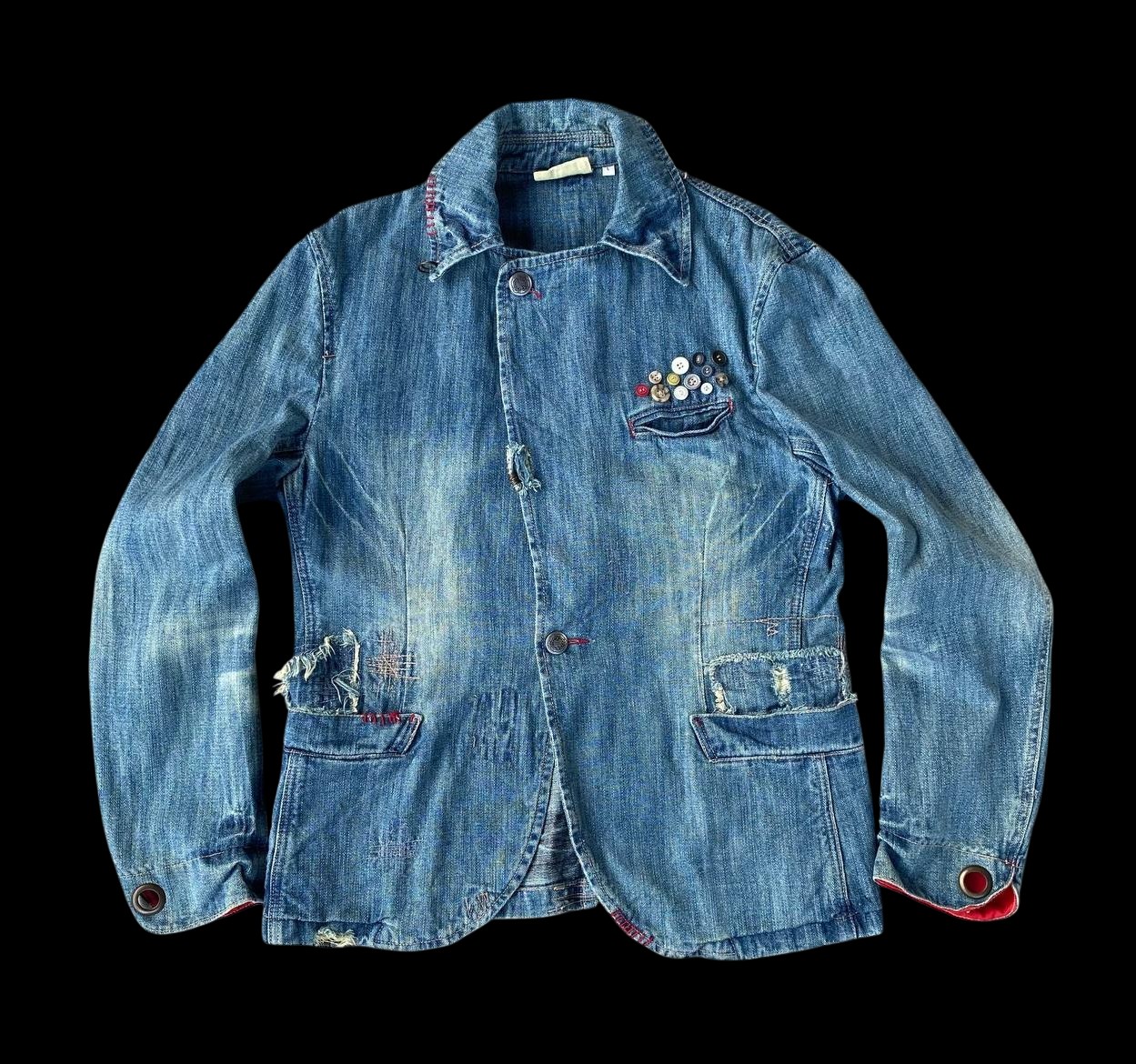 GUMU INTERNATIONAL JAPANESE DISTRESSED JACKET DENIM TYPE 3 MINIMALIST JACKET KIRO HIRATA KAPITAL STY