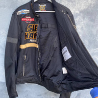 Item : Yellow Corn Sledge Hammer Racing biker jacket embroidered logo with patches *Size on tag LL *Condition-Good used condition Actual measurement: Armpit to Armpit /Chest : 22.5 inch Lenght Back : 27 inch Lenght front : 25.5 inch Shoulder to shoulder : 20.5 inch Sleeve lenght from shoulder : 27 inch *Make sure