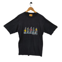 Materials: Cotton ITEM DETAIL ATTENTION The size on the tags label may vary with your actual size, please compare the manual measurement with your own body before buy!!! ( All measurements were taken lying flat). Label Size : Size: S (please refer to measurements) Chest : 20 inch Length : 29.5 inch Shoulder : 20 inch Sleeve : 10 inch CONDITION :- = Used = Good Vintage Condition = Refer Pictures For More Detail Step into timeless Italian style with this vintage Trussardi Jeans graphic tee, featuring a vibrant sailboat design across the chest. Crafted in Italy from 100% cotton, this piece blends nautical charm with designer flair. Perfect for collectors, fashion lovers, or anyone who appreciates bold, artistic prints. - Brand: Trussardi Jeans - Made in Italy 🇮🇹 - Material: 100% Cotton - Design: Colorful sailboats with geometric sails, “TRUSSARDI JEANS” logo Ref : T02 IMPORTANT PLEASE LEAVE YOUR PHONE NUMBER ON THE NOTE WHILE MAKE A PURCHASE Thank you and HAPPY SHOPPING