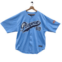 Rap Tees - Players 69 Baseball Jersey Hip hop Tee Light Blue