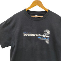 Materials: Cotton Catch the retro wave with this vintage T&C Surf Designs tee, a tribute to Hawaii’s legendary surf culture. Featuring a bold yin-yang logo and “The Endless Wave Tour” graphic on the back, this shirt lists iconic surf spots like Pipeline, Waimea, and Sunset Beach—perfect for collectors, surf enthusiasts, or anyone chasing that laid-back island vibe. ITEM DETAIL ATTENTION The size on the tags label may vary with your actual size, please compare the manual measurement with your own body before buy!!! ( All measurements were taken lying flat). Label Size : XL Chest : 24 inch Length : 28 inch Shoulder : 22 inch Sleeve : 9 inch CONDITION :- = Used = Gently worn with natural fade; adds to its authentic vintage charm = Refer Pictures For More Detail - Color : Black - Material : Soft cotton blend - Era : Likely 1990s - Construction : (single stitch) on sleeves and hem – a hallmark of true vintage quality - Fit : Classic unisex cut - Back Graphic : Yin-yang logo, tour title, and full list of Hawaiian surf spots Whether you're a surfer, a streetwear aficionado, or a vintage tee collector, this piece brings serious coastal nostalgia. Ref : t02 IMPORTANT PLEASE LEAVE YOUR PHONE NUMBER ON THE NOTE WHILE MAKE A PURCHASE Thank you and HAPPY SHOPPING