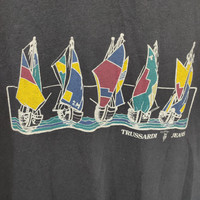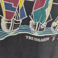 Materials: Cotton ITEM DETAIL ATTENTION The size on the tags label may vary with your actual size, please compare the manual measurement with your own body before buy!!! ( All measurements were taken lying flat). Label Size : Size: S (please refer to measurements) Chest : 20 inch Length : 29.5 inch Shoulder : 20 inch Sleeve : 10 inch CONDITION :- = Used = Good Vintage Condition = Refer Pictures For More Detail Step into timeless Italian style with this vintage Trussardi Jeans graphic tee, featuring a vibrant sailboat design across the chest. Crafted in Italy from 100% cotton, this piece blends nautical charm with designer flair. Perfect for collectors, fashion lovers, or anyone who appreciates bold, artistic prints. - Brand: Trussardi Jeans - Made in Italy 🇮🇹 - Material: 100% Cotton - Design: Colorful sailboats with geometric sails, “TRUSSARDI JEANS” logo Ref : T02 IMPORTANT PLEASE LEAVE YOUR PHONE NUMBER ON THE NOTE WHILE MAKE A PURCHASE Thank you and HAPPY SHOPPING