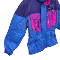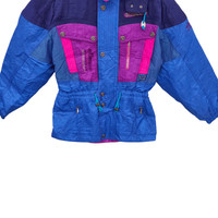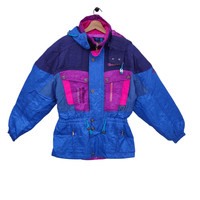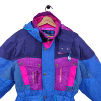 This vibrant vintage winter jacket features bold retro colorblocking in pink, purple, and teal. It’s padded for warmth and includes zippered and buttoned pockets, adjustable drawstrings, and classic 80s/90s styling. 🔧 Please note: Button number 1 and 3 (counting from the top) are damaged. This is clearly shown in the photos with scissors pointing to the affected button. The jacket is still wearable and ideal for collectors or lovers of nostalgic fashion. Brand: Ellesse Size: JASPO O (Chest 98cm / Height 175cm) Condition: Pre-loved with minor wear and two damaged buttons Made in Japan ITEM DETAIL ATTENTION The size on the tags label may vary with your actual size, please compare the manual measurement with your own body before buy!!! ( All measurements were taken lying flat). Label Size : M Chest : 25 inch Length : 31 inch Shoulder : 30 inch Sleeve : 20 inch CONDITION :- = Used = Good Vintage Condition = Refer Pictures For More Detail Ref : ski 1a IMPORTANT PLEASE LEAVE YOUR PHONE NUMBER ON THE NOTE WHILE MAKE A PURCHASE Thank you and HAPPY SHOPPING