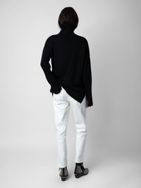 Women's cashmere turtleneck sweater with star buttons in black. Description & details This soft and luxurious cashmere sweater has a ribbed high collar and is adorned with buttons on the shoulder. - Zadig&Voltaire women’s knit sweater - Long sleeves - High collar - Jewel buttons - Ribbed collar and cuffs Model is 178 cm/5'80" and is wearing a size 36 Model is 177 cm / 5' 9" and is wearing a size 36 This item is true to size. We recommend buying your usual size. Composition 100% CASHMERE* Care Hand or machine wash your knitwear at 68°F in a pillowcase or washing bag. Do not use fabric softener or leave your knit soaking in water. The spin speed must not exceed 400 rpm. Dry flat on a towel away from direct sunlight and heat. Product code: KWSW00002_NOIR