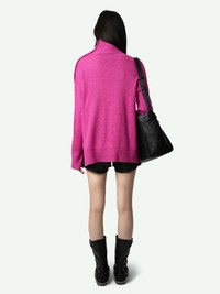 Fuchsia pink cashmere sweater with funnel neck and diamante star buttons on the shoulder. Description & details - Women's Clematis fuchsia pink cashmere sweater - Funnel neck and diamante star button fastening on shoulder - Long sleeves, holes for thumbs and ribbed edges - Pointelle ZV signature Model is 178 cm / 5' 10" and is wearing a size S This item is true to size. We recommend buying your usual size. Composition 85% Cashmere 10% Polyester 5% Metallic fiber Care - Hand-wash or machine-wash on a 20°C wool cycle with a maximum spin speed of 400 rpm - Do not wring - Air dry flat - Iron inside out at a maximum of 110°C, avoiding any customised details Product code: KWSW01645_CLEMATIS