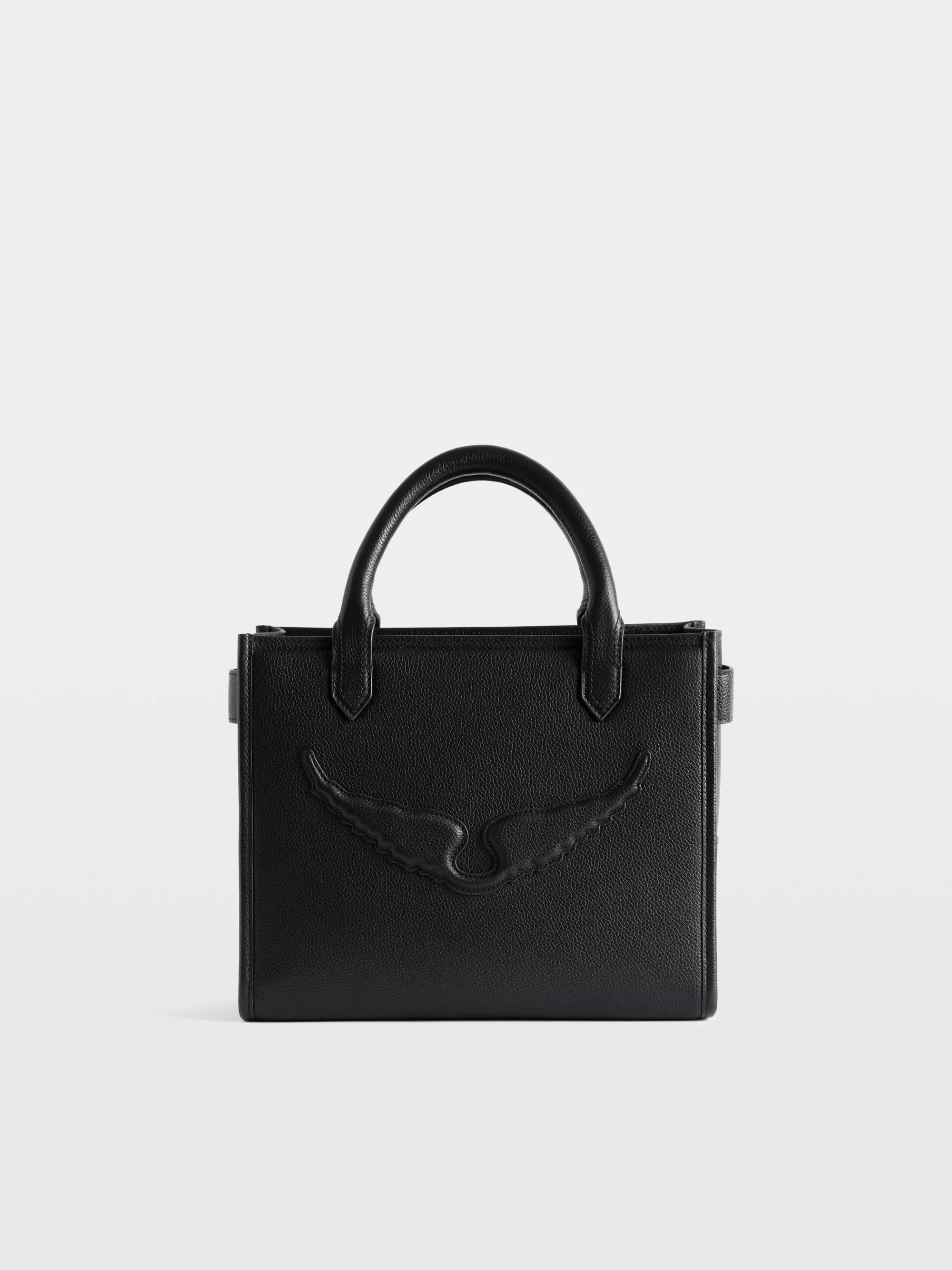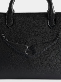 Small grained leather bag with double handles, shoulder strap and embossed wings signature. Description & details - Small grained leather tote bag - Double leather handles - Adjustable, detachable leather shoulder strap - Zip closure - Interior zip pocket - Embossed wings signature - Hand or shoulder carry 25 x 21.5 x 13 cm Composition 100% Cow leather Care - Protect your leather item from humidity and any source of heat (radiator, sun) - Avoid your item coming into contact with water - Regularly care for your leather item using a colourless nourishing cream for leather, suitable for leather goods - Ensure you wear your item with similar colours - Avoid overfilling your bag to ensure its durability - In case of stains, contact a leather professional Product code: LWBA04246_BLACK