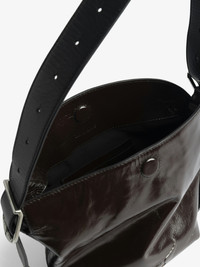 Vintage-effect patent leather bag with adjustable shoulder strap and embossed wings signature. Description & details - Vintage-effect patent leather bag - Adjustable and removable shoulder strap - Flap with magnetic closure - Applied interior pockets - Embossed wings signature - Worn on shoulder or cross-body 14 x 16 x 11 cm Composition 100% Cow leather Care - Protect your leather item from humidity and any source of heat (radiator, sun) - Avoid your item coming into contact with water - Regularly care for your leather item using a colourless nourishing cream for leather, suitable for leather goods - Ensure you wear your item with similar colours - Avoid overfilling your bag to ensure its durability - In case of stains, contact a leather professional Product code: LWBA04182_BROWNIE