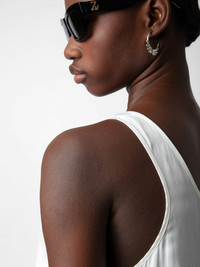 White satin round-neck top with cutaway shoulders. Description & details - Women’s Judo white flowing satin top - Round neckline - Cutaway shoulders Model is 177 cm / 5' 9" and is wearing a size S If you’re between two sizes, we recommend choosing the smaller size. Composition 57% POLYESTER** 43% POLYESTER Care - Hand-wash or machine-wash inside out in a mesh laundry bag on a 20°C delicate cycle with a maximum spin speed of 400 rpm - Air dry flat - Iron inside out at a maximum of 110°C Product code: WWTO00221_JUDO
