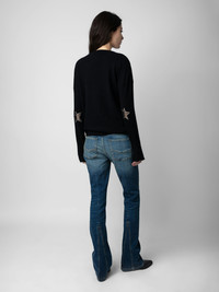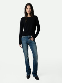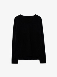 Zadig&Voltaire Women’s black sweater in 100% cashmere Description & details - Zadig&Voltaire Women’s black sweater in 100% cashmere - Round neck - Silver-coloured leather star patches on the elbows - Pointelle ZV signature - Ribbed neck, cuffs and waist Model is 178 cm/5'10" and is wearing a size S Model is 178 cm / 5' 10" and is wearing a size S This item is true to size. We recommend buying your usual size. Composition 100% CASHMERE* Care Hand or machine wash your knitwear at 20°C in a pillowcase or washing bag. Do not use fabric softener or leave your knit soaking in water. The spin speed must not exceed 400 rpm. Dry flat on a towel away from direct sunlight and heat. Product code: PWGMZ1101F_NOIR