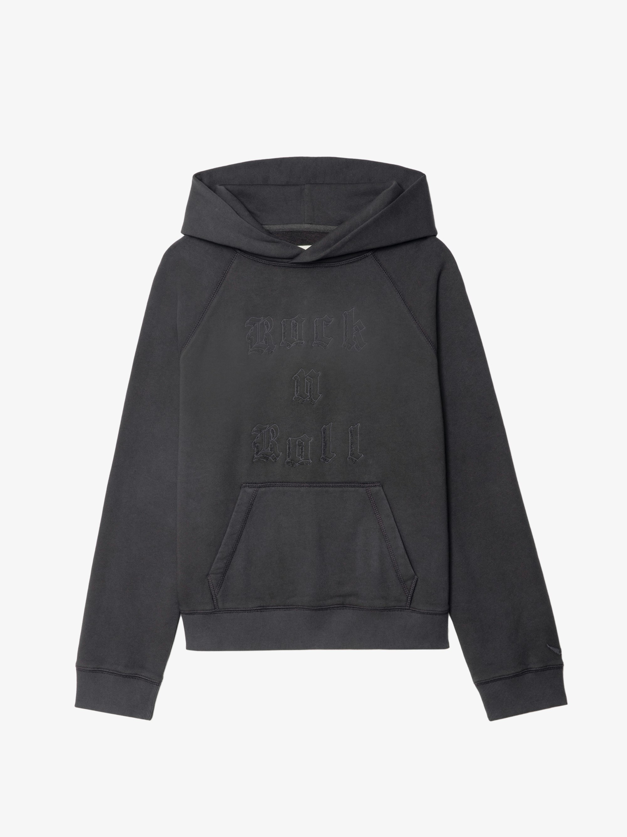 Hooded sweatshirt with long sleeves and rhinestone print on the front. Description & details - Sweatshirt in 100% cotton - "Rock n roll" inscription with rhinestones on the front - Hood - Long sleeves - Front pocket Model is 180 cm / 5' 10" and is wearing a size S This item is true to size. We recommend buying your usual size. Composition 100% Cotton** Care - Machine-wash inside out on a 30°C delicate cycle with similar colours - Air dry - Iron inside out at a maximum of 110°C, avoiding any customised details Product code: JWSS01607_CARBONE