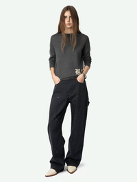 Long-sleeved crew neck sweater with ROCK on the lower front. Description & details - Sweater in 100% featherweight cashmere - Jacquard intarsia "Rock" message at the bottom - Crew neck - Long sleeves and ribbed edges with worn effect - Naturally warm, featherweight cashmere is lighter and more delicate than classic cashmere. It is knitted more finely, making it an exceptional piece. Model is 176 cm / 5' 9" and is wearing a size S This item is true to size. We recommend buying your usual size. Composition 100% Cashmere Care - Hand-wash or machine-wash on a 20°C wool cycle with a maximum spin speed of 400 rpm - Do not wring - Air dry flat - Iron inside out at a maximum of 110°C, avoiding any customised details Product code: KWSW02797_ANTHRACITE