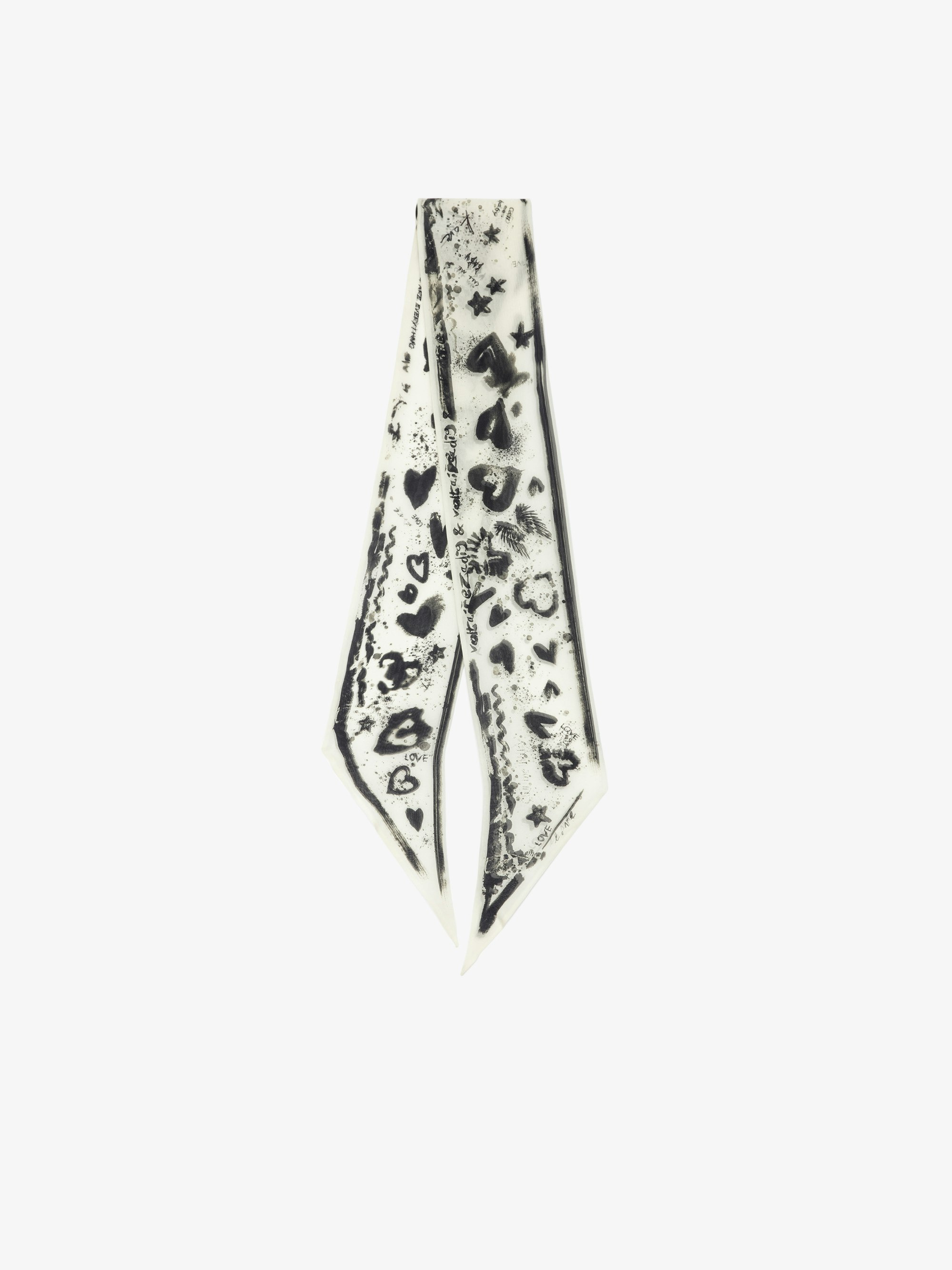 Silk scarf with heart print. Description & details - Women's square silk scarf in ecru Flash - Heart print - Made in Italy 200 x 200 x 16 cm Composition 100% Silk** Care - Hand-wash or machine-wash inside out in a mesh laundry bag on a 20°C delicate cycle with a maximum spin speed of 400 rpm - Air dry flat - Iron inside out at a maximum of 110°C Product code: OWSC01503_FLASH