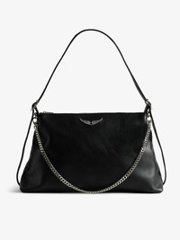 Soft grained leather bag adorned with a chain and rhinestone wing. Description & details - Soft grained leather bag - Adjustable and removable handle - Metal chain - Magnetic closure - Interior zipped pocket - Wings signature - Carried by hand or shoulder 39 x 24 x 13 cm. Shoulder strap/chain height: 30 cm. Handle height: 13 - 57 cm Composition 100% Cow leather Care - Protect your leather item from humidity and any source of heat (radiator, sun) - Avoid your item coming into contact with water - Regularly care for your leather item using a colourless nourishing cream for leather, suitable for leather goods - Ensure you wear your item with similar colours - Avoid overfilling your bag to ensure its durability - In case of stains, contact a leather professional Product code: LWBA04310_BLACK