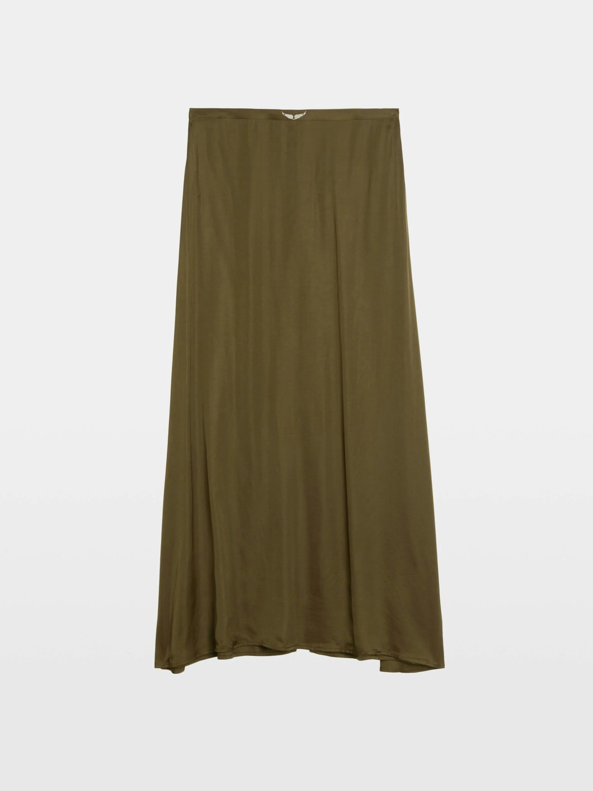 Long skirt in viscose satin with back slit, zip closure and metal wings on belt. Description & details - Long satin skirt - Back zip closure - Back slit - Belt with metal wings - Fluid fit Model is 178 cm / 5' 10" and is wearing a size 36 This item fits true to size. Choose your usual size. Composition 100% Viscose** Care - Hand-wash or machine-wash inside out in a mesh laundry bag on a 20°C delicate cycle with a maximum spin speed of 400 rpm - Air dry flat - Iron inside out at a maximum of 110°C Product code: WWSK01613_TREILLIS