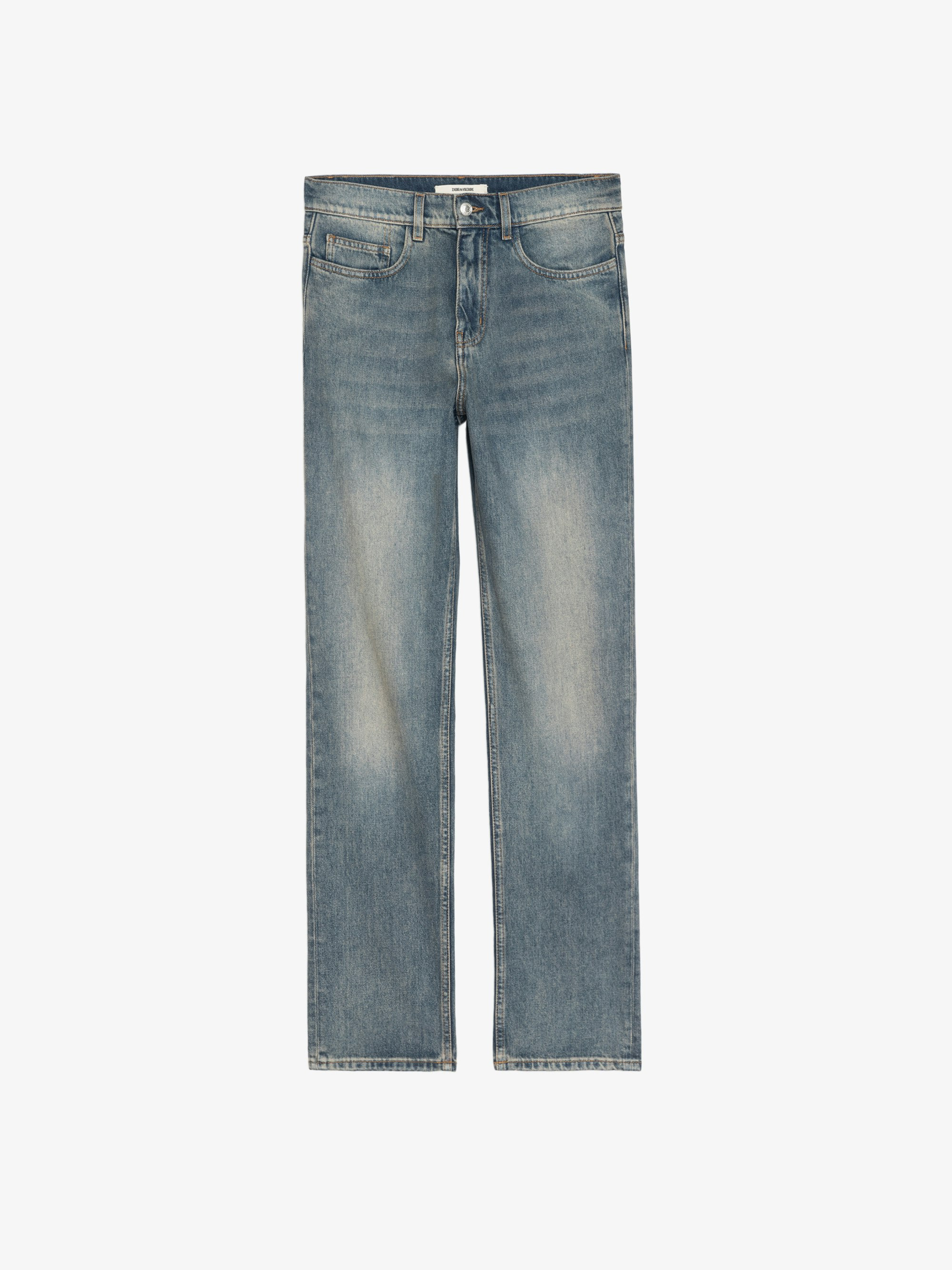 Straight jeans with zip and button fastening at the waistband. Description & details - Jeans in 100% cotton - Regular fit - Mid-rise waist - Zip and button fastening - 5 pockets: patch pockets, jean pockets and ticket pocket Model is 189 cm / 6' 2" and is wearing a size M This item fits true to size. Choose your usual size. Composition 100% Cotton* Care - Machine-wash inside out on a 30°C delicate cycle with similar colours - Air dry - Iron inside out at a maximum of 150°C, or in case of customised details, at a maximum of 110°C avoiding the customised details Product code: WMJE01196_LIGHT BLUE