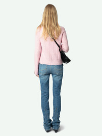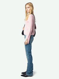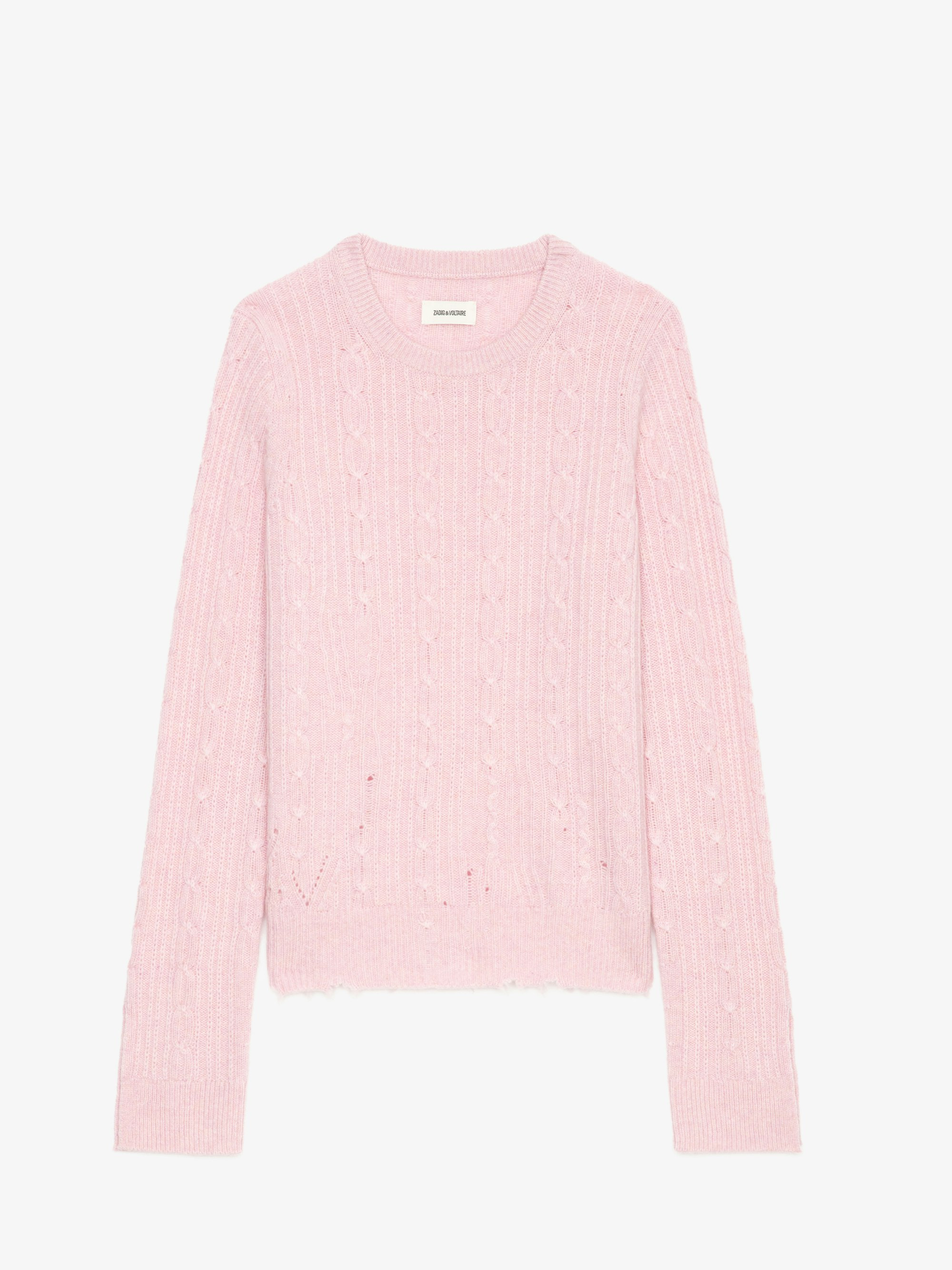Pink sweater in 100% cashmere with long sleeves, split cuffs, and cable knit detailing. Description & details - Women's Boudoir pink 100% cashmere sweater - Pointelle knit with cableknit details - Crew neck - Long sleeves with split cuffs - Ribbed edges, distressed hem, and ZV pointelle signature Model is 177 cm / 5' 9" and is wearing a size S This item is true to size. We recommend buying your usual size. Composition 100% Cashmere* Care - Hand-wash or machine-wash on a 20°C wool cycle with a maximum spin speed of 400 rpm - Do not wring - Air dry flat - Iron inside out at a maximum of 110°C, avoiding any customised details Product code: KWSW02674_BOUDOIR
