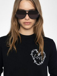 Sweater with round neck and heart embroidery on the front. Description & details - Wool and cashmere sweater - Heart embroidery on the front - Round neck - Long sleeves Model is 180 cm / 5' 10" and is wearing a size S This item fits true to size. Choose your usual size. Composition 90% Wool* 10% Cashmere Care - Hand-wash or machine-wash on a 20°C wool cycle with a maximum spin speed of 400 rpm - Do not wring - Air dry flat - Iron inside out at a maximum of 110°C, avoiding any customised details Product code: KWSW02900_BLACK