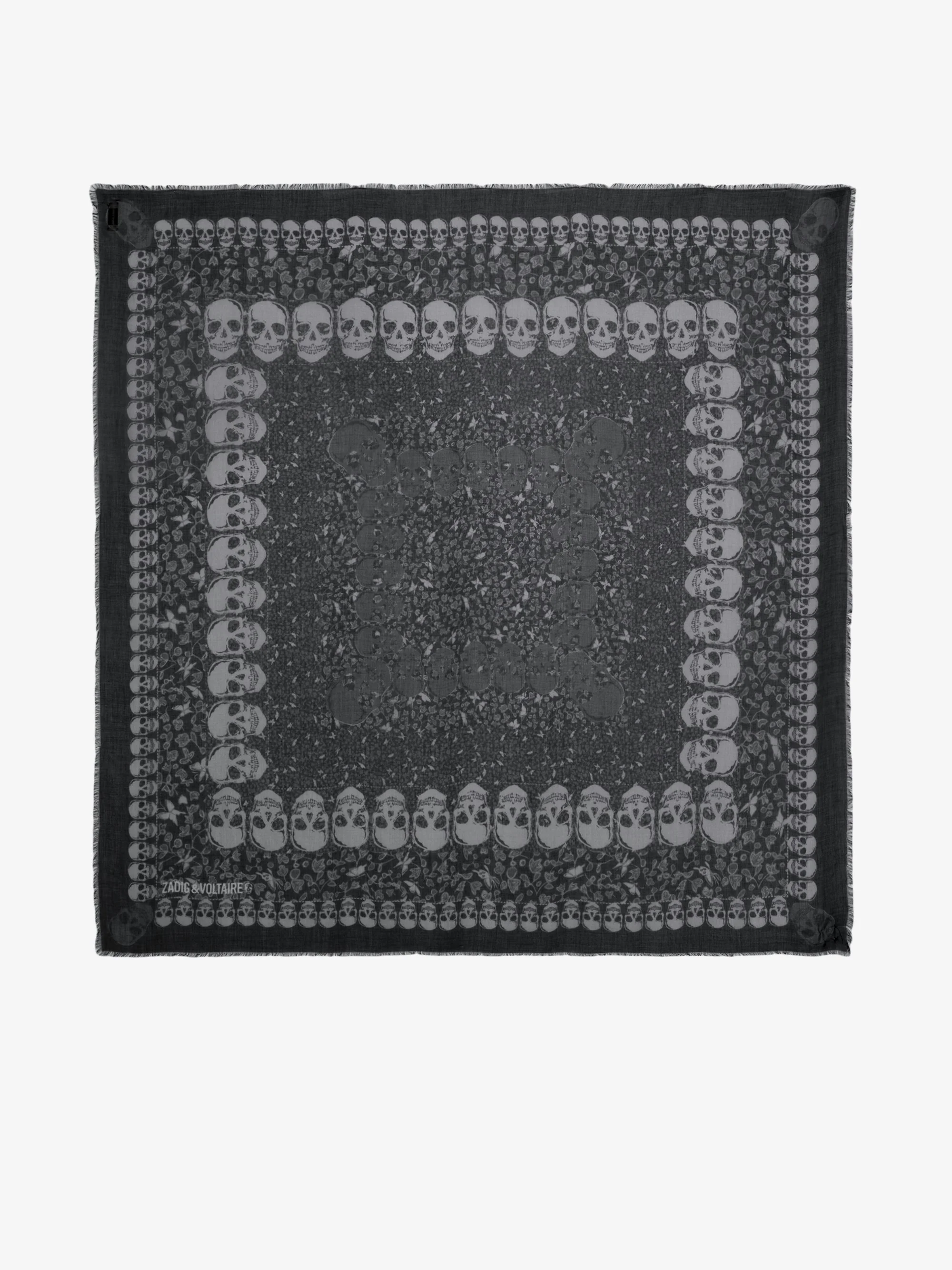 Modal scarf with skull and flower print. Description & details - Scarf - Skull and flower print 135 x 135 cm Composition 100% Modal** Care - Hand-wash or machine-wash inside out in a mesh laundry bag on a 20°C delicate cycle with a maximum spin speed of 400 rpm - Air dry flat - Iron inside out at a maximum of 110°C Product code: OWSC01519_BLACK