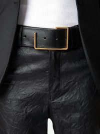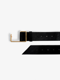 Adjustable black vegetable-tanned leather belt with C buckle. Description & details - Women’s adjustable black vegetable-tanned leather belt - Gold-tone fine metal C buckle - Width: 5 cm - Made in France Width: 5 cm Composition 100% COW LEATHER Care - Protect your leather item from humidity and any source of heat (radiator, sun) - Avoid your item coming into contact with water - Regularly care for your leather item using a colourless nourishing cream for leather, suitable for leather goods - In case of stains, contact a leather professional Product code: LWBT00295_NOIR