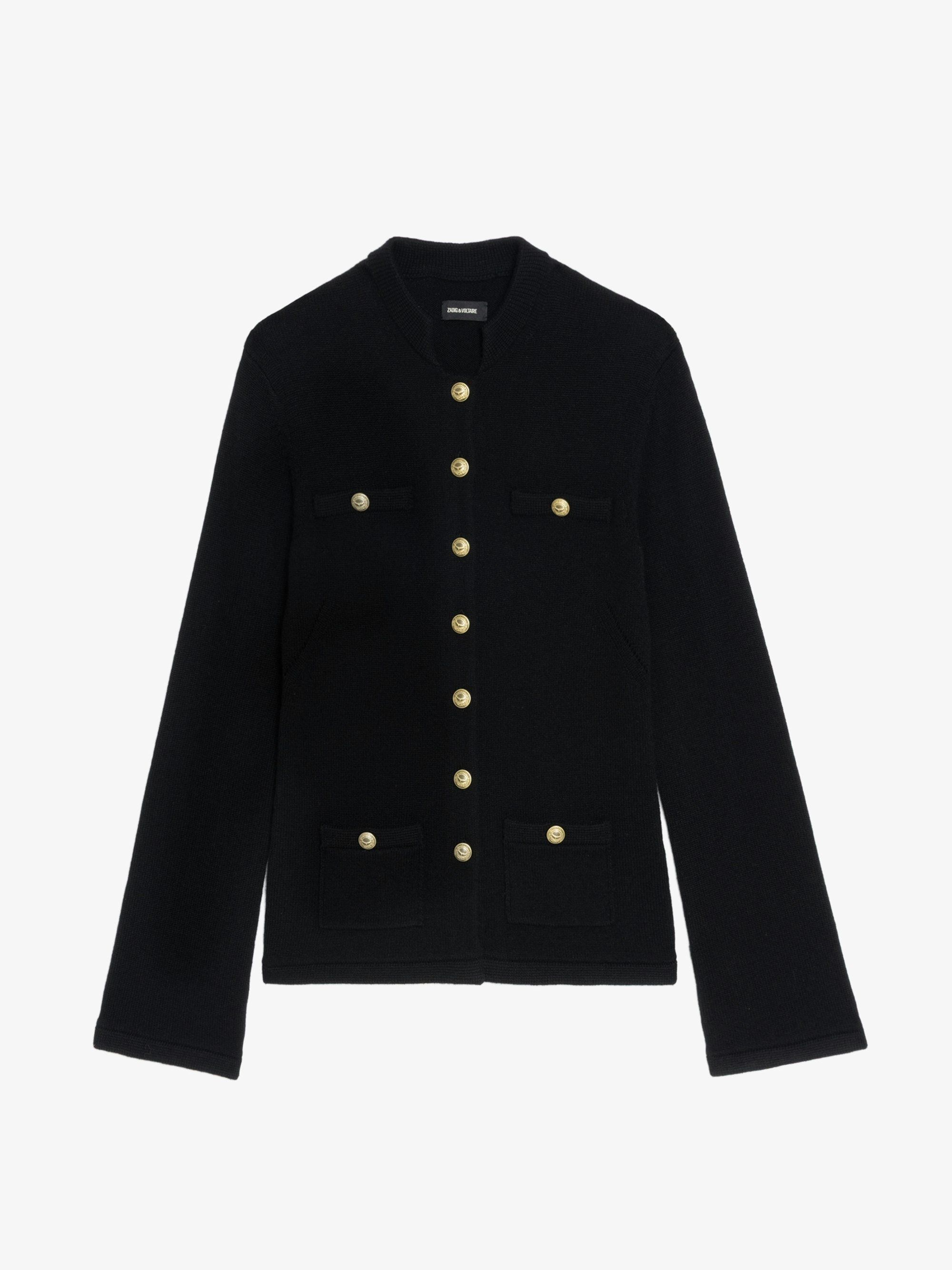 Buttoned cardigan jacket with patch pockets. Description & details - Wool and cashmere cardigan - Officer collar - Patch pockets - Button closure - Long sleeves Model is 178 cm / 5' 10" and is wearing a size s This item fits true to size. Choose your usual size. Composition 90% Wool* 10% Cashmere Care - Hand-wash or machine-wash on a 20°C wool cycle with a maximum spin speed of 400 rpm - Do not wring - Air dry flat - Iron inside out at a maximum of 110°C, avoiding any customised details Product code: KWCA01634_BLACK