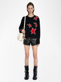 Round neck sweater with star worn effect. Description & details - Sweater in 100% cashmere - Jacquard star pattern with worn effects - Round neck - Long sleeves Model is 180 cm / 5' 10" and is wearing a size S This item has a loose fit. For a more fitted look, choose one size down from your usual size. Composition 100% Cashmere Care - Hand-wash or machine-wash on a 20°C wool cycle with a maximum spin speed of 400 rpm - Do not wring - Air dry flat - Iron inside out at a maximum of 110°C, avoiding any customised details Product code: KWSW02842_BLACK