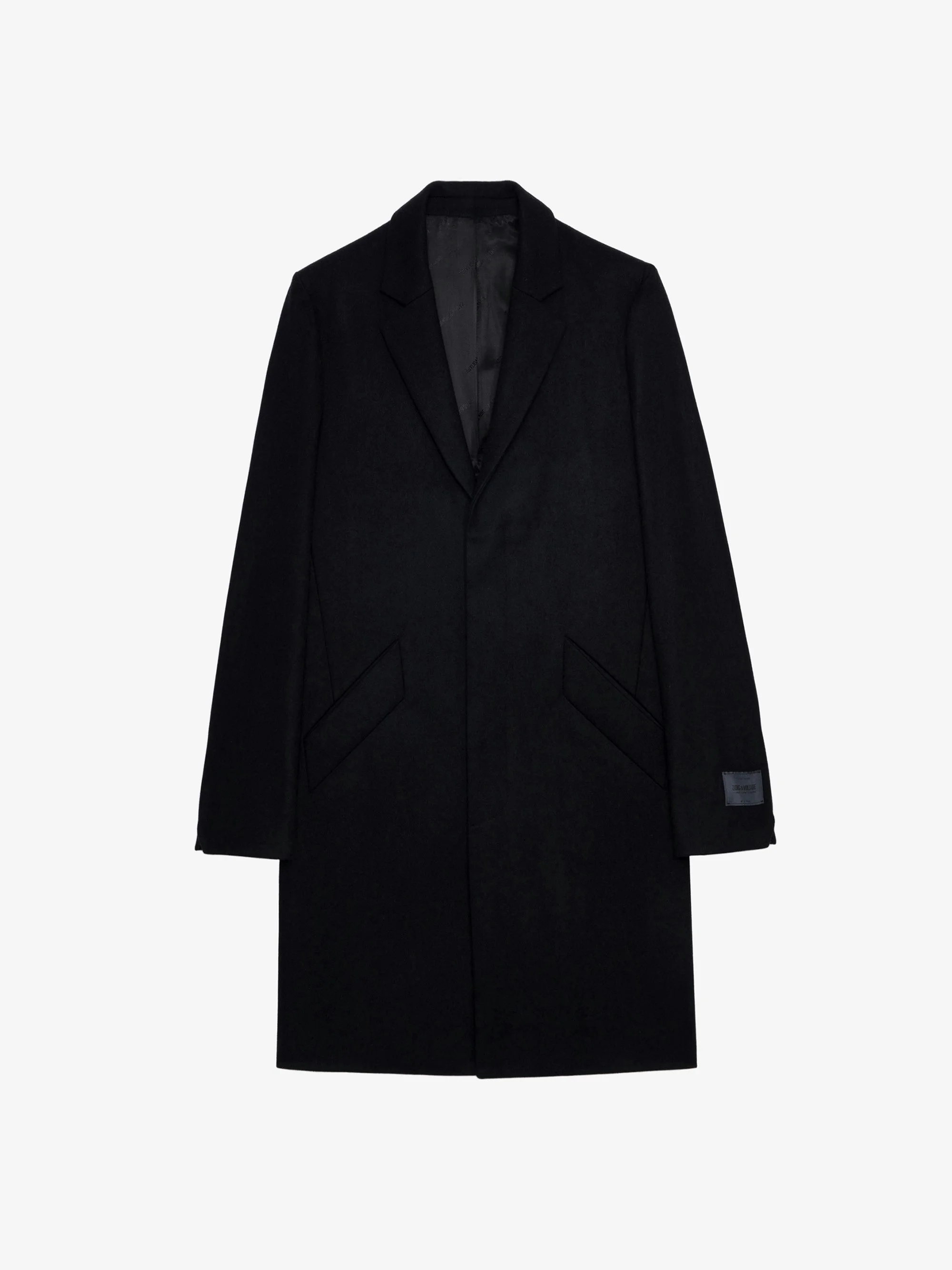 Unisex black wool midi coat with contrasting undercollar featuring the slogan “C’est la faute à Voltaire”. Description & details - Unisex black wool midi coat - Lapel collar and contrasting undercollar featuring the slogan “C’est la faute à Voltaire” - 2 side pockets - Button fastening - Long sleeves, mitred cuffs and slit at the back - Made in Portugal Model is 188 cm / 6' 2" and is wearing a size M This item is true to size. We recommend buying your usual size. Composition 75% WOOL 25% POLYAMIDE Care Hand or machine wash your knitwear at 68°F in a pillowcase or washing bag. Do not use fabric softener or leave your knit soaking in water. The spin speed must not exceed 400 rpm. Dry flat on a towel away from direct sunlight and heat. Product code: WMCO00071_NOIR