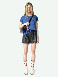 Short-sleeved t-shirt with embroidered Zadig heart on the front. Description & details - Cotton t-shirt - Zadig heart embroidery - Round neck - Short sleeves - Made in Portugal Model is 177 cm / 5' 9" and is wearing a size S This item is true to size. We recommend buying your usual size. Composition 100% Cotton* Care - Machine-wash inside out on a 30°C delicate cycle with similar colours - Air dry - Iron inside out at a maximum of 110°C, avoiding any customised details Product code: JWTS02781_SURF