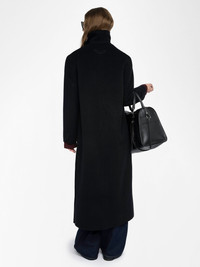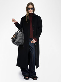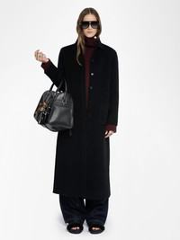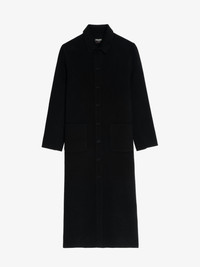 Long straight coat in wool blend, long sleeves, buttoned closure and applied pockets at the front. Description & details - Long straight coat in wool blend - Classical collar - Buttoned closure - Applied pockets at the front - Long sleeves Model is 178 cm / 5' 10" and is wearing a size S This item fits true to size. Choose your usual size. Composition 81% Wool** 11% Polyester** 6% Acrylic 2% Viscose Care This garment should be dry-cleaned only. Product code: WWCO01235_BLACK