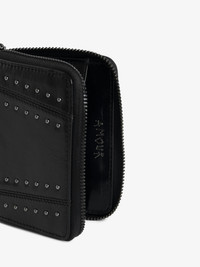 Vintage leather wallet with studs. Description & details - Vintage leather wallet - Studs - 2 gussets - Zip closure - Wings signature 11 x 8.5 cm Composition 100% Cow leather Care - Protect your leather item from humidity and any source of heat (radiator, sun) - Avoid your item coming into contact with water - Regularly care for your leather item using a colourless nourishing cream for leather, suitable for leather goods - In case of stains, contact a leather professional Product code: LWSG03801_BLACK