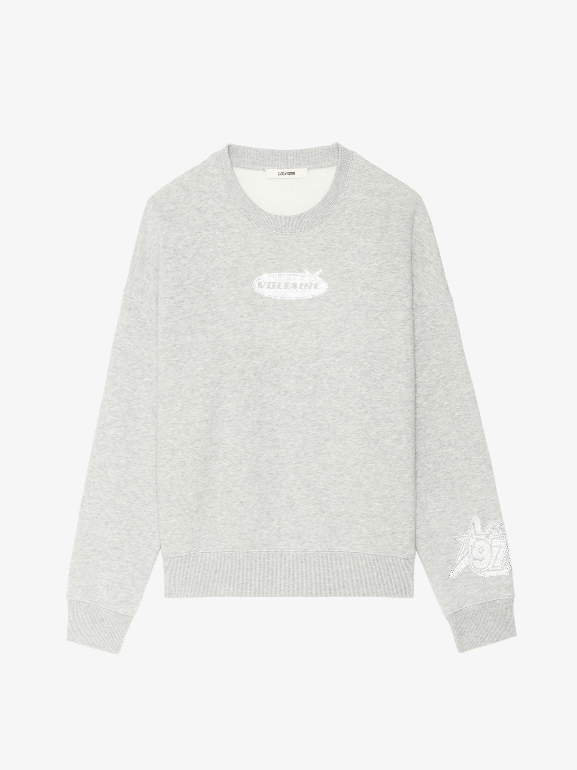 Round neck sweatshirt with rhinestone embellishment. Description & details - Sweatshirt - Rhinestone embellishment - Round neck - Long sleeves Model is 177 cm / 5' 9" and is wearing a size S This item has a loose fit. For a more fitted look, choose one size down from your usual size. Composition 74% Cotton** 26% Polyester** Care - Machine-wash inside out on a 30°C delicate cycle with similar colours - Air dry - Iron inside out at a maximum of 110°C, avoiding any customised details Product code: JWSS01680_GRIS CHINE CLAI