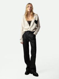 Ecru cashmere buttoned cardigan with long sleeves, motifs and slogans. Description & details - Women’s Judo ecru cashmere cardigan - Heart motifs on the chest, intarsia jacquard “Je t’aime” and “Amour” slogans and pointelle ZV signature - V neckline and button fastening - Long sleeves, ribbed collar, hem and cuffs Model is 180 cm / 5' 10" and is wearing a size S This item is true to size. We recommend buying your usual size. Composition 100% CASHMERE Care - Hand-wash or machine-wash on a 20°C wool cycle with a maximum spin speed of 400 rpm - Do not wring - Air dry flat - Iron inside out at a maximum of 110°C, avoiding any customised details Product code: KWCA00567_JUDO