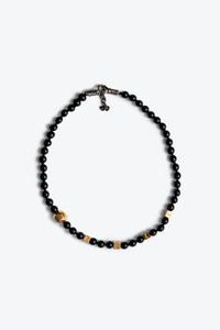 Women’s cord necklace with metal charms and stones. Description & details - Zadig&Voltaire women's cord and brass necklace - Beads - Rock message - Adjustable Composition 100% BRASS Product code: OWJW00567_OLD GOLD