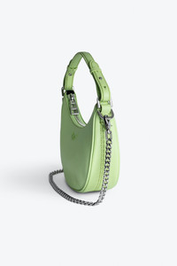 Women’s half-moon bag in green grained leather with a short handle, shoulder strap, chain and signature wings. Description & details - Women’s Moonrock bag in Tonic green grained leather - Black cotton lining - Short leather handle, adjustable Zadig&Voltaire branded nylon shoulder strap and removable metal chain - Signature wings with tone-on-tone diamanté embellishment - Inside patch pocket - Zip closure - Carry by hand, over the shoulder or across the body Width x Height x Depth: 9.1 x 7.1 x 2.6 in. Handle height: 7.7 in. Chain strap drop: 14.2 in. Ajustable shoulder strap drop: 11.8 - 21.3 in. Composition 100% COW LEATHER Care Do not expose your item to a source of heat or to sunlight for a prolonged period. In the event of accidental exposure to water, leave your item to dry at room temperature, away from direct light. Avoid routinely overloading your handbag or clutch. To prolong its life, store your item in a dust bag and pad it with tissue paper to maintain its shape. To maintain the shine of your smooth or grained leather item, use a leather cream or polish. Product code: LWBA02401_TONIC