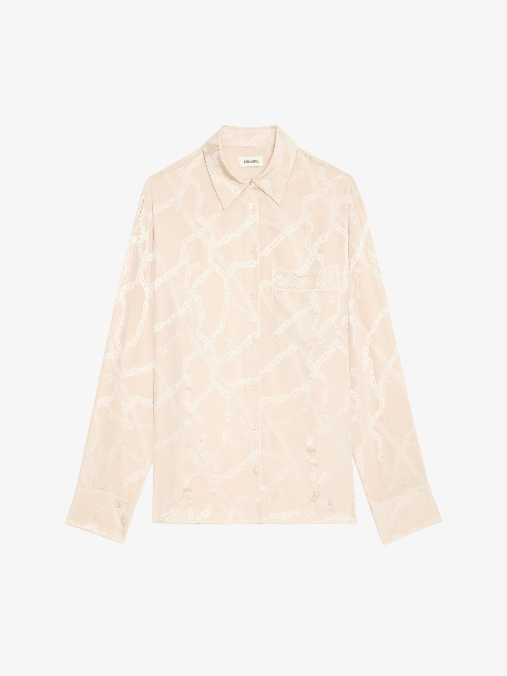 Powder pink silk button down shirt with jacquard chains, button fastening, and pocket embellished with lace. Description & details - Women’s lingerie-style sweet powder pink silk button down shirt - Jacquard chains - Pink silk button down shirt with collar and button fastening - Long sleeves and buttoned cuffs - Chest pocket with lace embellishment This French lace was made by Sophie Hallette exclusively for Zadig&Voltaire. Model is 176 cm / 5' 9" and is wearing a size S This item is true to size. We recommend buying your usual size. Composition 100% Silk Care - Hand-wash or machine-wash inside out in a mesh laundry bag on a 20°C delicate cycle with a maximum spin speed of 400 rpm - Air dry flat - Iron inside out at a maximum of 110°C Product code: WWSH00589_SWEET