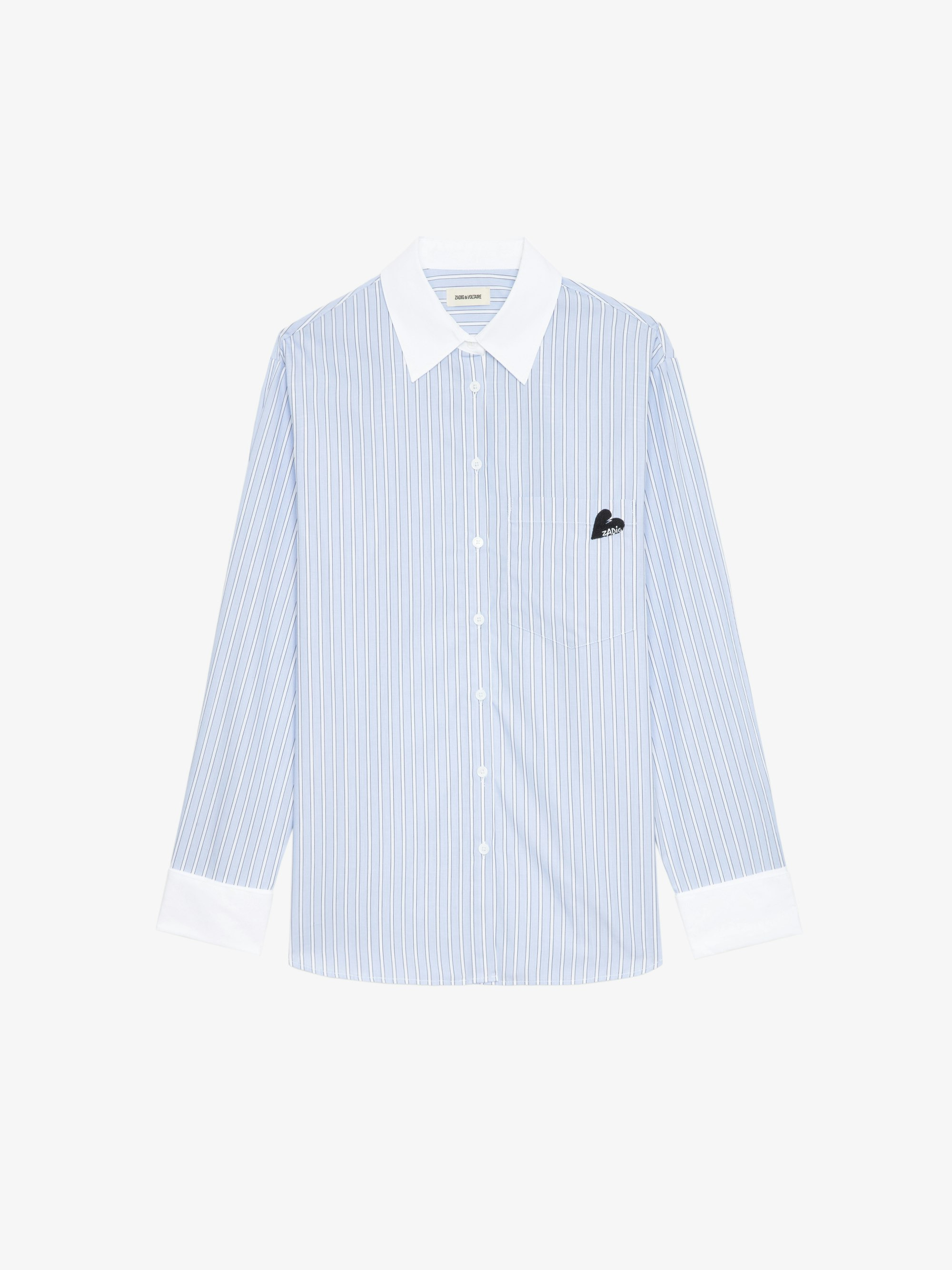 The Morning Shirt refreshes classic tailoring with a relaxed attitude. Cut from crisp cotton, this oversized striped poplin shirt features fine navy-and-ecru stripes offset by bright white French cuffs. Dropped shoulders and a long, easy silhouette soften the line, while a single chest pocket and clean button placket keep the look sharp. Wear the striped poplin shirt loose over pleated shorts on warm mornings or half-tucked into leather trousers after dark for an effortless edge. Description & details - Oversized 100 % cotton striped poplin shirt in navy and ecru - Classic shirt collar with full button front - Contrasting white cuffs, long sleeves, and dropped shoulders for a laid-back drape - Single chest pocket offers subtle utility - Curved, mid-thigh hem layers easily as a lightweight outer layer - Back box pleat increases movement, keeping the striped poplin shirt cool from day to night Model is 176 cm / 5' 9" and is wearing a size S This item is true to size. We recommend buying your usual size. Composition 100% Cotton* Care - Hand-wash or machine-wash inside out in a mesh laundry bag on a 20°C delicate cycle with a maximum spin speed of 400 rpm - Air dry flat - Iron inside out at a maximum of 110°C Product code: WWSH02165_MIST