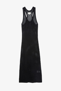 Women's long black cotton dress Description & details This long Nabys Crochet Dress has a round neck and a see-through effect. It is crocheted for a casual, bohemian look. - Zadig&Voltaire women's long crochet dress in black cotton - Round neck - Racerback - Sleeveless - Product code: KWDR00165_NOIR - The GOTS certification guarantees that this product does not contain GMOs. It also ensures the absence of harmful substances in the product, a social and environmental responsible management and the end-to-end traceability of the supply chain. The dyes are made with GOTS approved inks and colorants, which do not contain toxic heavy metals and do not require aromatic solvents nor harmful substances. - Hand or machine wash your knitwear at 68°F in a pillowcase or washing bag. Do not use fabric softener or leave your knit soaking in water. The spin speed must not exceed 400 rpm. Dry flat on a towel away from direct sunlight and heat. Model is 178 cm / 5' 10" and is wearing a size S This item is true to size. We recommend buying your usual size. Composition 100% Cotton** Care Hand-wash or machine-wash your garment at a maximum of 20 °C, in a mesh laundry bag and inside out, with a gentle spin cycle. Air-dry. Iron your garment on a low heat setting or steam from a distance of 20 cm, being particularly careful with customised details. Product code: KWDR00165_NOIR