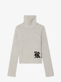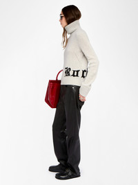 High-neck sweater with rock intarsia on front. Description & details - Sweater in 100% merino wool - Jacquard "Rock" pattern on the front - High neck - Long sleeves and ribbed cuffs Model is 178 cm / 5' 10" and is wearing a size S This item fits true to size. Choose your usual size. Composition 100% Merino wool* Care - Hand-wash or machine-wash on a 20°C wool cycle with a maximum spin speed of 400 rpm - Do not wring - Air dry flat - Iron inside out at a maximum of 110°C, avoiding any customised details Product code: KWSW02872_GRIS CHINE CLAI