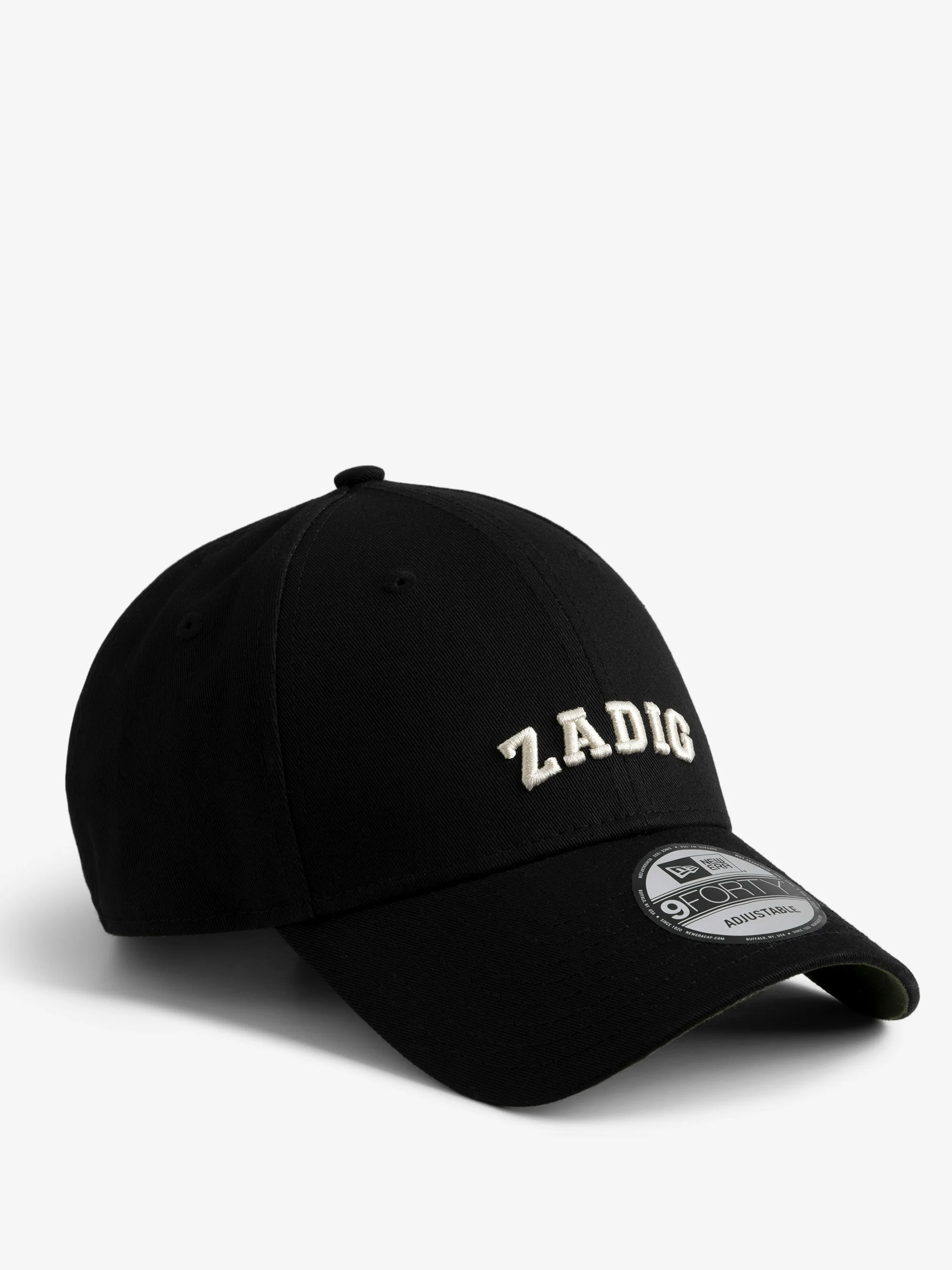 New Era x Zadig&Voltaire cotton cap with Zadig embroidery. Description & details This cap is the result of a unique collaboration with New Era, the world's leading headwear brand that combines the highest quality with the elegant rock spirit of Zadig&Voltaire. - Cotton cap - Zadig embroidery - New Era label and embroidered logo - Adjustable strap Composition 100% Cotton Product code: OWHT01158_BLACK