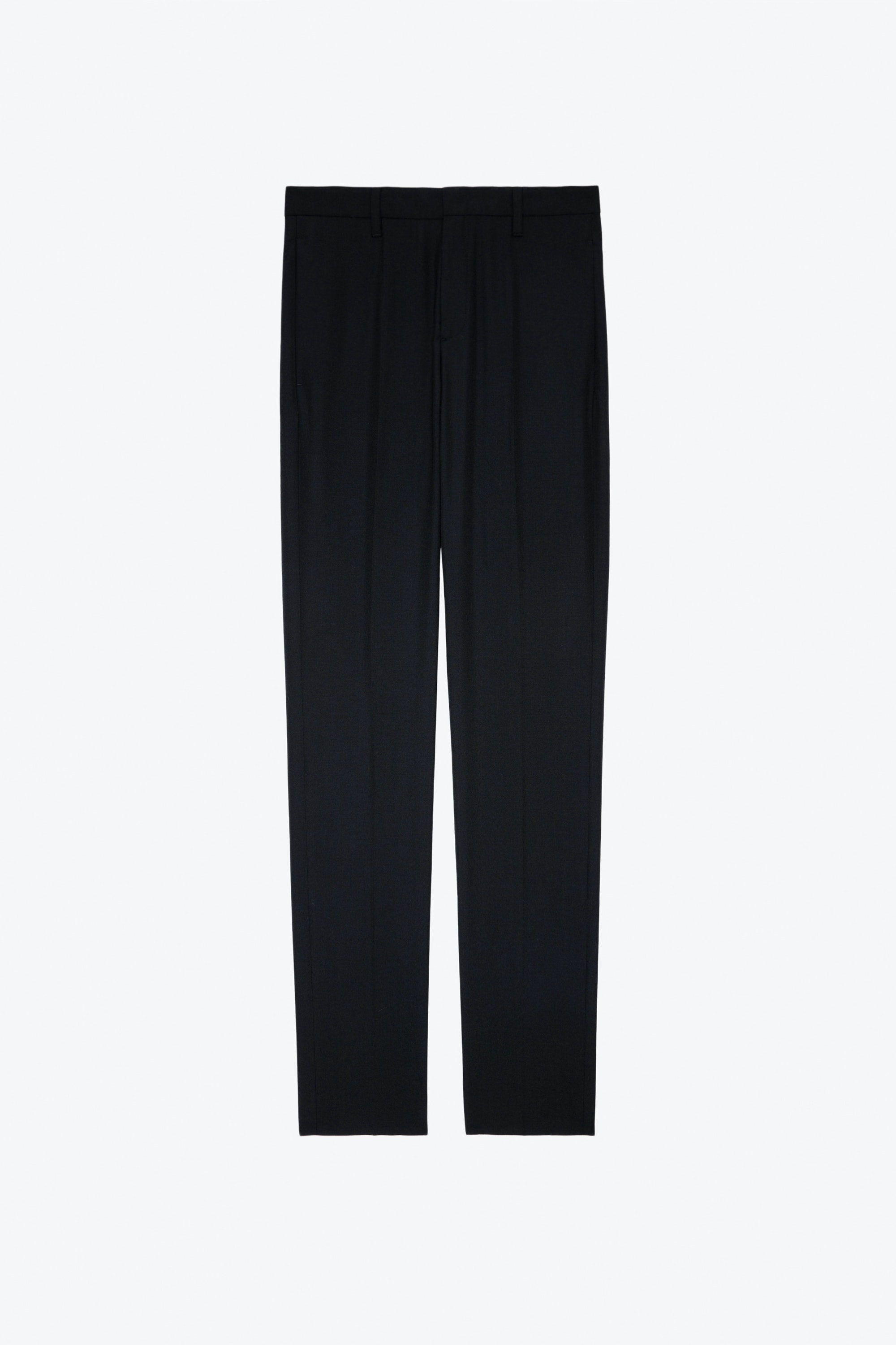 Unisex tailored black wool pants with studio insignia on back. Description & details - Unisex tailored black wool pants - Lengthwise pleats and belt loops at the waist - 2 piped pockets and studio insignia on back - Made in Portugal Model is 188 cm / 6' 2" and is wearing a size M This item is true to size. We recommend buying your usual size. Composition 55% POLYESTER 45% VIRGIN WOOL Care - This garment should be dry-cleaned only - Iron inside out at a maximum of 230°F, avoiding any customized details Product code: WMPA00188_NOIR