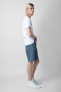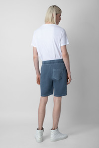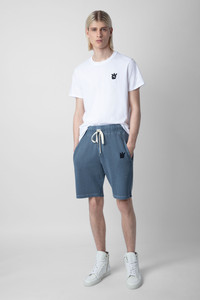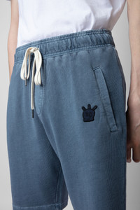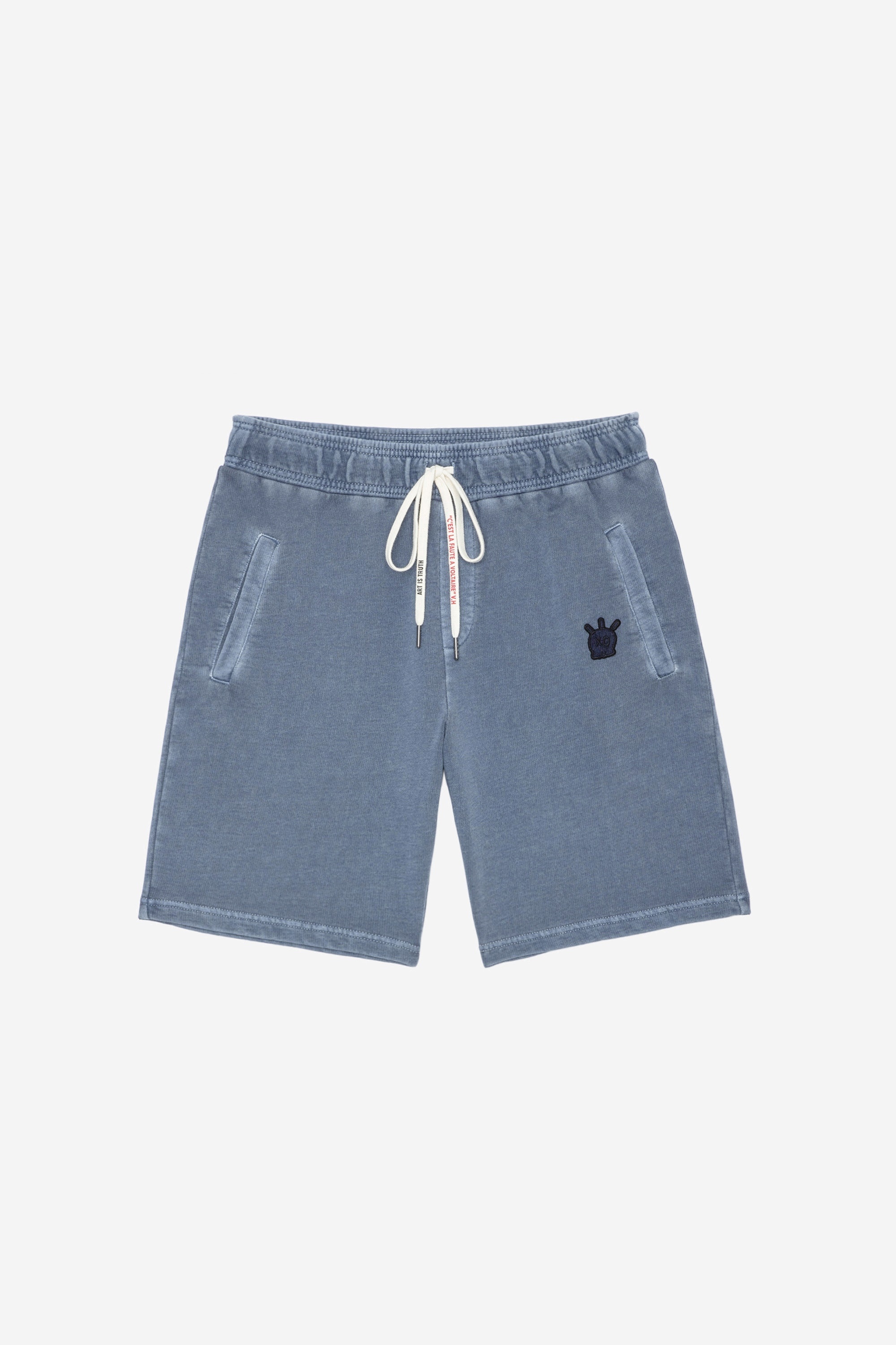 Men’s blue cotton fleece shorts featuring a Skull XO patch. Description & details Venezuelan street artist Jormi has reworked one of the brand’s iconic symbols: the skull and crossbones. The XO Project capsule collection is the result of this collaboration: a wardrobe that combines urban style with sportswear. - Men’s Horizon blue cotton shorts - Skull XO patch - Drawstring waist with printed slogans "Art is truth" and "C'est la faute à Voltaire” - 2 side pockets and 1 welt back pocket Model is 189 cm / 6' 2" and is wearing a size M This item is true to size. We recommend buying your usual size. Composition 100% COTTON* Care Hand-wash or machine-wash your garment at a maximum of 20 °C, in a mesh laundry bag and inside out, with a gentle spin cycle. Air-dry. Iron your garment on a low heat setting or steam from a distance of 20 cm, being particularly careful with customised details. Product code: JMBS00005_HORIZON