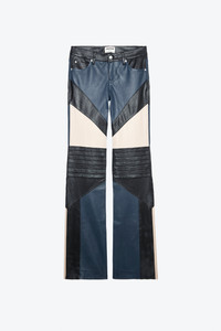 Women’s black contrasting leather pants with overstitched details. Description & details - Women’s black leather pants - 5 pockets - Zip and button fly and belt loops - Contrasting panels and overstitched details - Wide at hem Model is 180 cm / 5' 10" and is wearing a size 36 This item is true to size. We recommend buying your usual size. Composition 100% LAMBSKIN Care This garment should be cared for by a leather professional. Product code: RWPA00075_NOIR