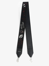 Punk-style canvas shoulder strap, embroidered with signature wings. Description & details - Punk-style canvas shoulder strap - Snap hooks - Signature wings embroidery 100 x 4 cm Composition 50% Cotton** 50% Cotton Care - Do not machine-wash your item - In case of stains, contact a leather professional Product code: LWST01130_BLACK