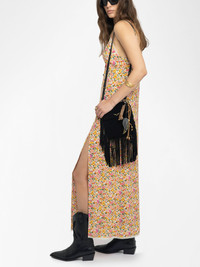 Long lingerie-inspired dress in printed viscose, with slit, adjustable straps, wing embroidery on the back and lace details. Description & details - Long lingerie-inspired dress - Lace details - V-neck - Adjustable straps - Slit - Wing embroidery on the back This French lace was made by Sophie Hallette exclusively for Zadig&Voltaire. Model is 177 cm / 5' 9" and is wearing a size S This item fits true to size. Choose your usual size. Composition 100% Viscose** Care - Hand-wash or machine-wash inside out in a mesh laundry bag on a 20°C delicate cycle with a maximum spin speed of 400 rpm - Air dry flat - Iron inside out at a maximum of 110°C Product code: WWDR02600_ECRU