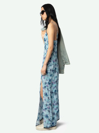 This long, lingerie-inspired dress is crafted from 100 % silk printed with the house’s Tropical Island artwork. Delicate lace outlines the neckline and hem, and signature wing embroidery rests between the shoulder blades. A fluid slit skirt and adjustable straps keep the fit easy and the look effortless, making the Ramelil a true silk vacation dress, equally at home on sun-warmed sand or under city lights. Description & details - Long silk vacation dress in the Tropical Island print - Lace-trimmed V-neckline; thin adjustable straps for a custom fit - Signature wing embroidery at the upper back adds a subtle edge - Side slit gives the silk vacation dress graceful movement and breathability - Lightweight, unlined construction packs small and moves comfortably from day to night Model is 171 cm / 5' 7" and is wearing a size S This item is true to size. We recommend buying your usual size. Composition 100% Silk Care - Hand-wash or machine-wash inside out in a mesh laundry bag on a 20°C delicate cycle with a maximum spin speed of 400 rpm - Air dry flat - Iron inside out at a maximum of 110°C Product code: WWDR02531_MIST