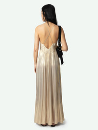 This long, pleated dress is crafted from luxurious satin, featuring a lingerie-inspired design with a sultry slit and adjustable cross-over straps for a personalized fit. Available in a radiant gold hue, this dress exudes sophistication and effortless style. The Rayonne Satin Dress is a timeless addition to any wardrobe, perfect for both day and evening occasions. Description & details - Long pleated lingerie-inspired dress in satin - Thin, adjustable cross-over straps - Gathered front detail at chest level - Front slit Model is 171 cm / 5' 7" and is wearing a size S This item is true to size. We recommend buying your usual size. Composition 100% Polyester** Care - Hand-wash or machine-wash inside out in a mesh laundry bag on a 20°C delicate cycle with a maximum spin speed of 400 rpm - Air dry flat - Iron inside out at a maximum of 110°C Product code: WWDR02528_GOLD