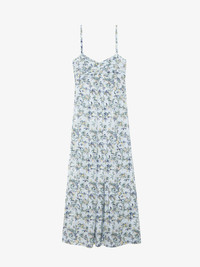 Long printed viscose dress with adjustable straps and pleated bodice. Description & details - Long dress - Floral print - V-neckline - Adjustable straps - Smocked back - Pleated bustier - Fluid fit Model is 180 cm / 5' 10" and is wearing a size S This item fits true to size. Choose your usual size. Composition 100% Viscose Product code: WWDR02673_CLOUD