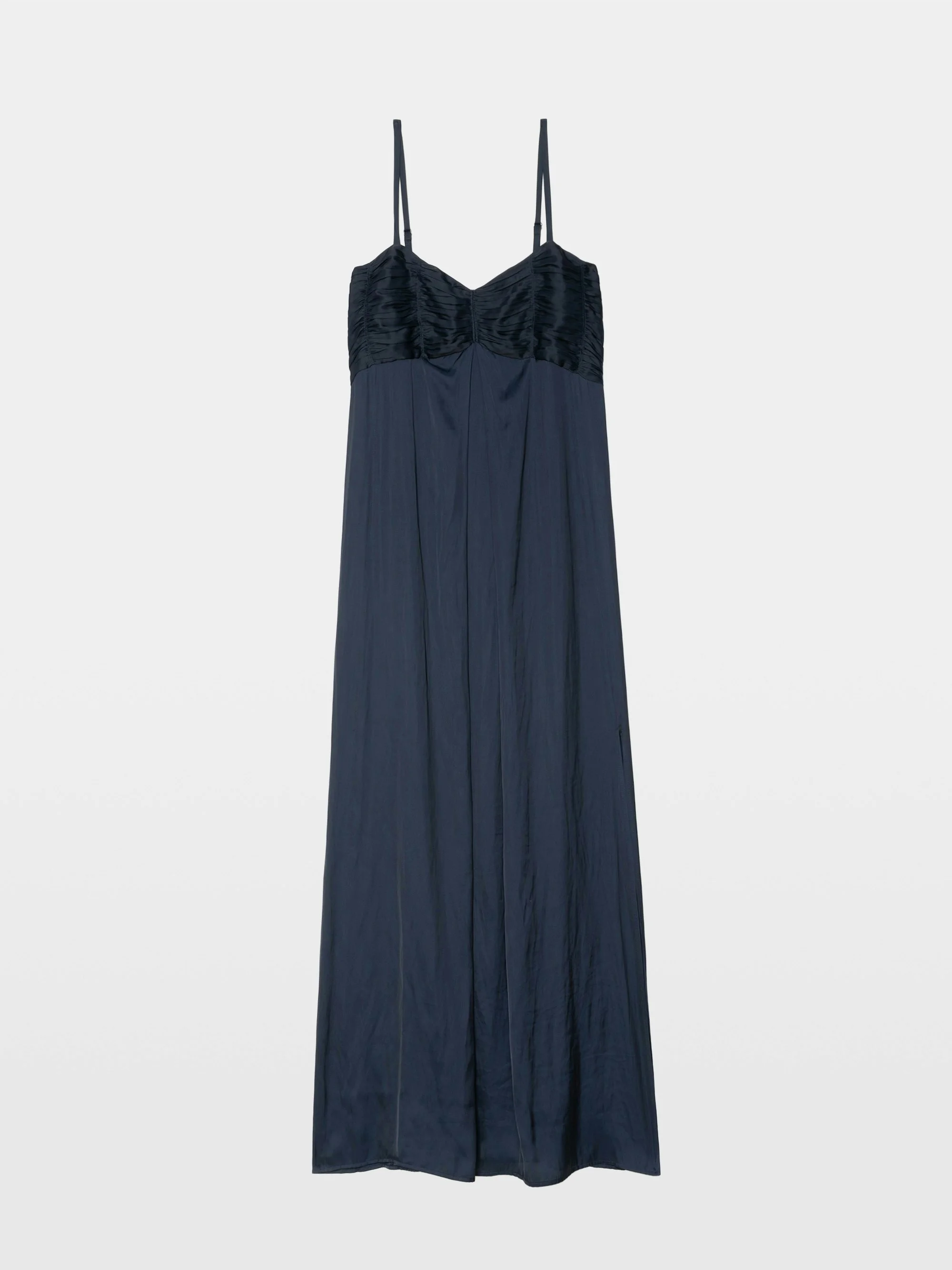 Long lingerie-inspired dress in Japanese satin with adjustable straps and a pleated bustier. Description & details - Long lingerie-inspired dress in Japanese satin - V-neckline - Adjustable straps - Pleated bustier - Fluid cut Model is 177 cm / 5' 9" and is wearing a size S This item fits true to size. Choose your usual size. Composition 51% Polyester* 49% Polyester Care - Hand-wash or machine-wash inside out in a mesh laundry bag on a 20°C delicate cycle with a maximum spin speed of 400 rpm - Air dry flat - Iron inside out at a maximum of 110°C Product code: WWDR02690_ENCRE