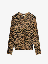 V-neck long-sleeved sweater with all-over leopard print. Description & details - Sweater in 100% cashmere - Leopard print - V-neck - Long sleeves Model is 178 cm / 5' 10" and is wearing a size S This item fits true to size. Choose your usual size. Composition 100% Cashmere Care - Hand-wash or machine-wash on a 20°C wool cycle with a maximum spin speed of 400 rpm - Do not wring - Air dry flat - Iron inside out at a maximum of 110°C, avoiding any customised details Product code: KWSW02839_DAIM