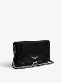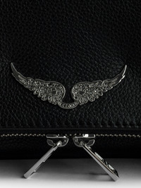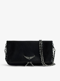 Zadig&Voltaire women's black bag. Description & details The iconic Rock clutch will take you seamlessly from day to evening. It features a double chain and leather strap, so you can choose to wear it across the body or on the shoulder. - Zadig&Voltaire Women’s Rock clutch in black leather - Worn on the shoulder or across the body - Removable chains - Adjustable and removable shoulder strap - Several compartments including a large, zipped interior compartment - Zipped pocket at the back - Zip closure - Flap with magnetic closure - Removable double metal chain - Crystal-embellished wings charm Width x Height x Depth: 10.6 x 5 x .8 in. Chain strap drop : 13 in and 22.5 in Composition 100% COW LEATHER Care Do not expose your item to a source of heat or to sunlight for a prolonged period. In the event of accidental exposure to water, leave your item to dry at room temperature, away from direct light. Avoid routinely overloading your handbag or clutch. To prolong its life, store your item in a dust bag and pad it with tissue paper to maintain its shape. To maintain the shine of your smooth or grained leather item, use a leather cream or polish. Product code: PWGAP2003F_NOIR